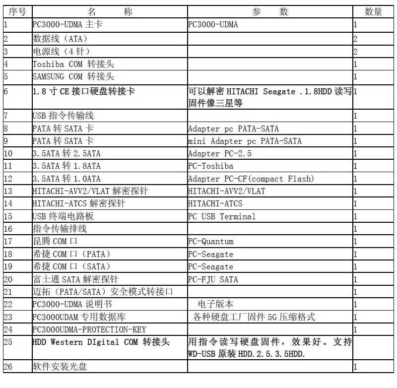 PC3000 For windows UDMA and Data Extractor UDMA 硬件配件见下表